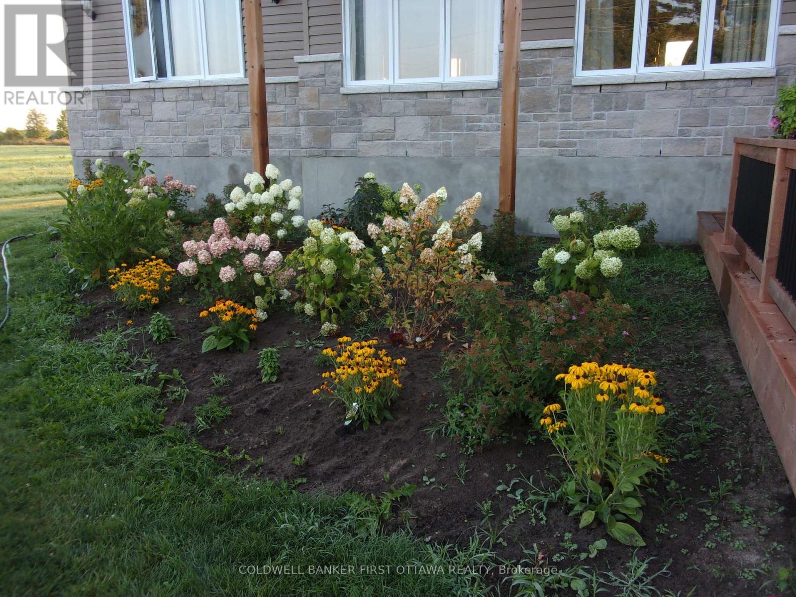 Sparkling new 2022 bungalow on 1.4 acres in quiet upscale country neighbourhood, located 15 mins from Perth or Carleton Place. Car enthusiasts, contractors and hobbyist will love the attached 3-car garage-workshop that has heat, hydro, water & extra high ceiling. Attractive, well-built family home with exterior stone and siding blending into surrounding country landscape. Large tiered front deck offers welcoming entrance or, place to relax on summer days. Front door glass panels let light flow thru light bright foyer with closet. Open living-dining and kitchen’s high vaulted ceiling creates great sense of space. Extra-large windows for lots of natural light. Dining area includes contemporary iron-styled chandelier and patio doors to back deck with BBQ hookup. Modern kitchen has island-breakfast bar, pantry and window overlooking big back yard. Primary suite also features large window and includes walk-in closet with auto light; 4-pc ensuite glass shower & deep soaker tub with porcelain surround that complements porcelain floor. Second bedroom & 4-pc bathroom. Main floor laundry room w/large closet (seller will convert to third bedroom, if wanted). Expansive lower level family room, part of it awaiting your finishing plans. Lower level bedroom has huge closet. Lower level 4-pc bathroom with deep soaker surrounded by porcelain tile. Front and back decks, ideal for watching sunsets and sunrises; listen to the crickets and wait for evening’s first star. Attached 3-car garage includes floor drains, drywall and pot lights. Plus, garage has overhead propane heater; hot & cold water and wrap-about 30×20′ workbench. Located on paved township road with garbage pickup and mail delivery. Elementary school a minute walk away. Bell hi-speed and cell service. Mississippi Lake public boat launch 5 mins down the road. And, 15 min drive to picturesque historical Perth for shopping and fine dining or 15 mins to larger center of Carleton Place. Direct 30 min commute to Kanata. (id:21126)